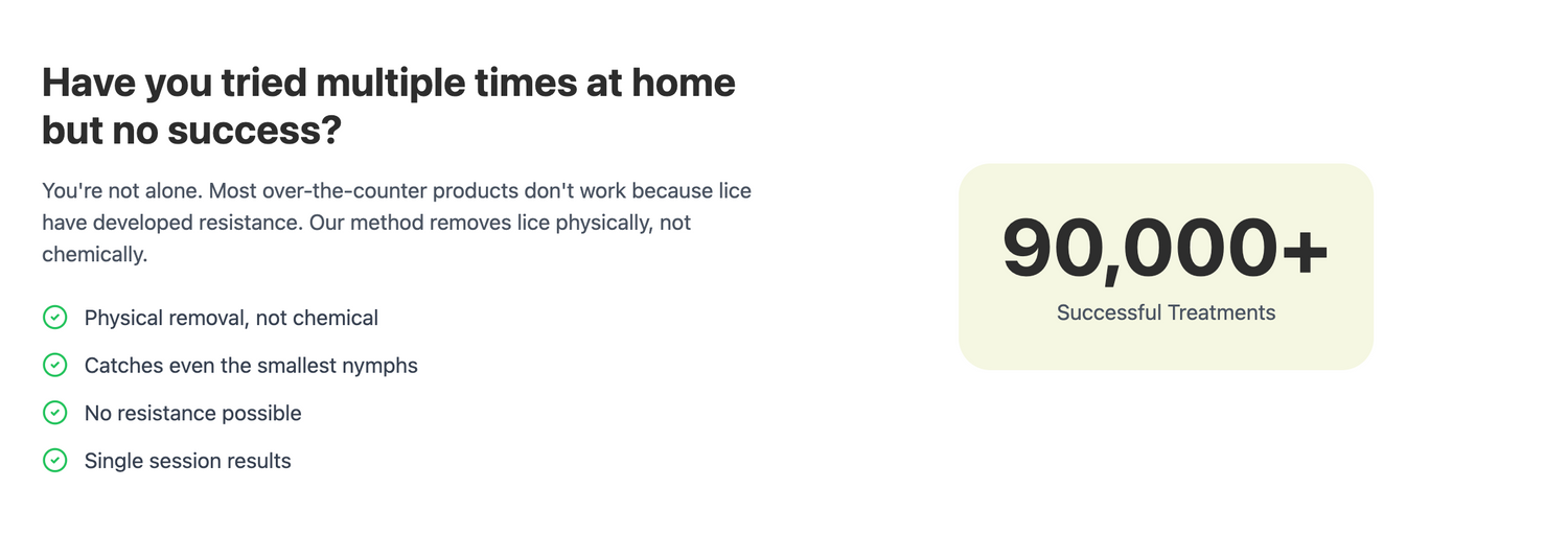 Award-winning treatment clinic with over a decade of expertise in head lice removal.